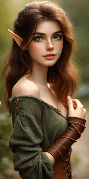 | Kelly is elvish, slim, actually slight, with the long legs of a newborn foal. She is tall, 5'10" but very light, only 115 pounds. Her hair changes with the seasons, beautiful sable brown in the summer, russet red in the fall, the palest white in the winter and golden blonde in the spring. Even her eyes change with the seasons, hazel in the summer, chocolate brown in the fall, pale icy blue in the winter and brilliant green in the spring. She dresses in greens and mottle, allowing her to blend into the forest with ease. | |||||